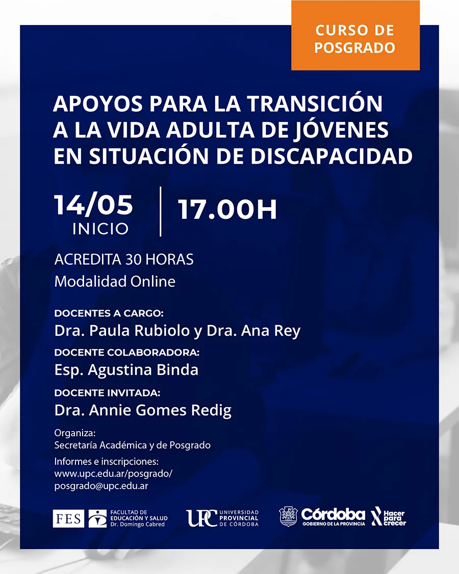 Este curso de posgrado ofrece un espacio de formación y de reflexión para docentes y profesionales que acompañan a jóvenes en situación de discapacidad en este último tramo de la trayectoria escolar o en otros espacios sociales. La propuesta profundiza en herramientas conceptuales y prácticas que, basadas en el análisis de experiencias situadas, promueven la articulación intersectorial y el diseño de estrategias para una participación social efectiva.