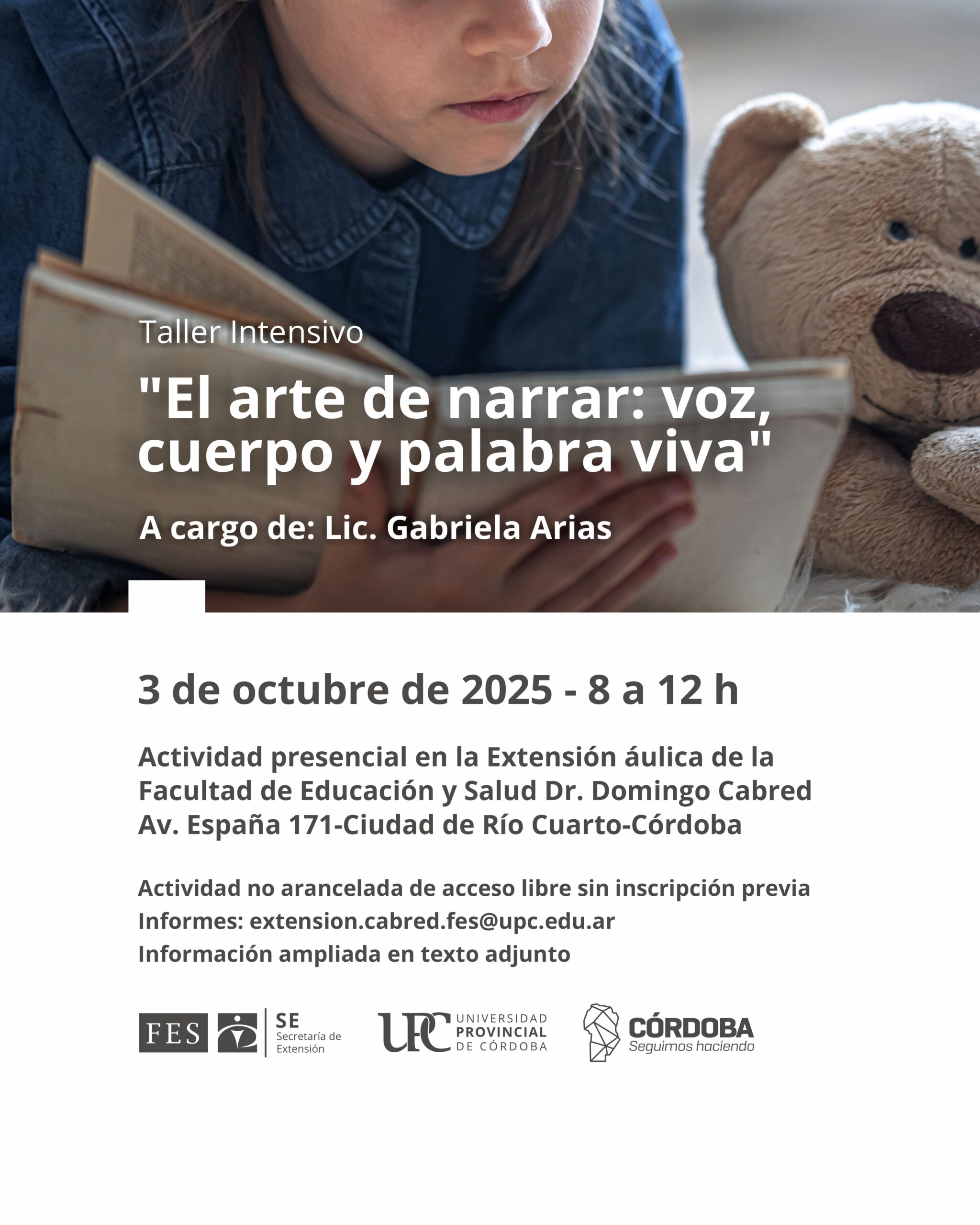 Lugar: Extensión áulica Facultad de Educación y Salud Dr. Domingo Cabred (Av. España 171. Ciudad de Río Cuarto – Córdoba).